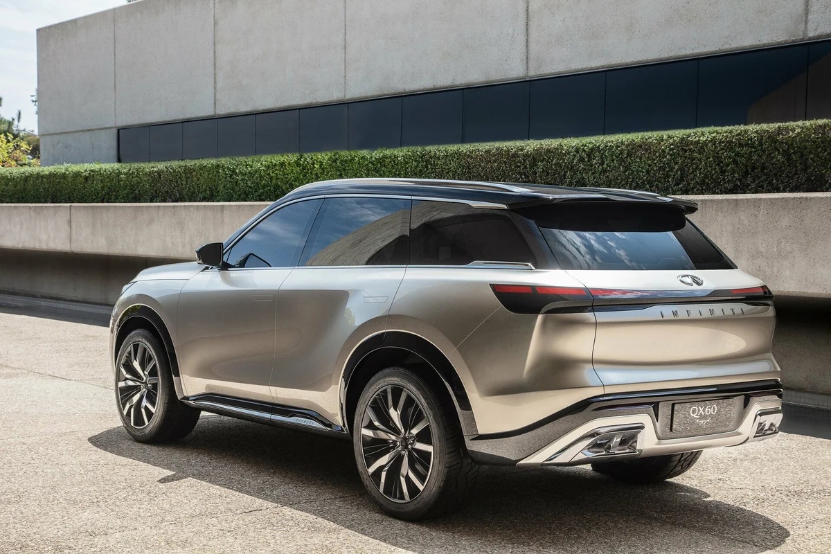 Внешне автомобиль будет очень похож на ранее показанный прототип Infiniti QX60 Monograph (на всех фото). У серийного кроссовера будут, в частности, такие же узкие фары, соединённые светящейся перемычкой задние фонари и большая решётка радиатора с сетчатым рисунком.