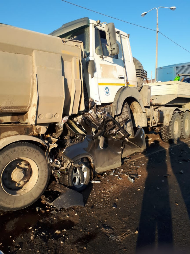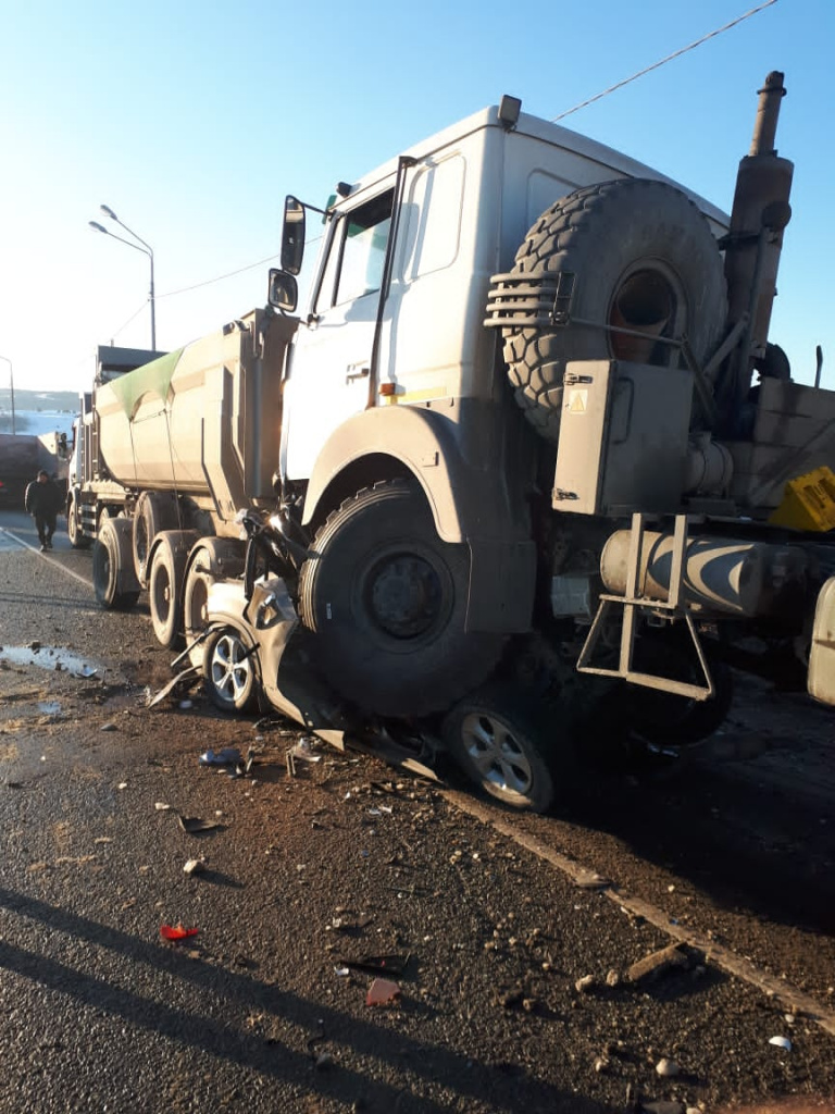 В результате аварии легковушку буквально раздавило грузовиками – водитель погиб на месте. Водитель МАЗа получил травмы.
