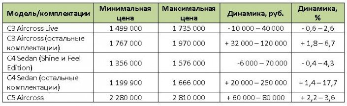С новыми ценами на автомобили Citroen можно ознакомиться в этой таблице: