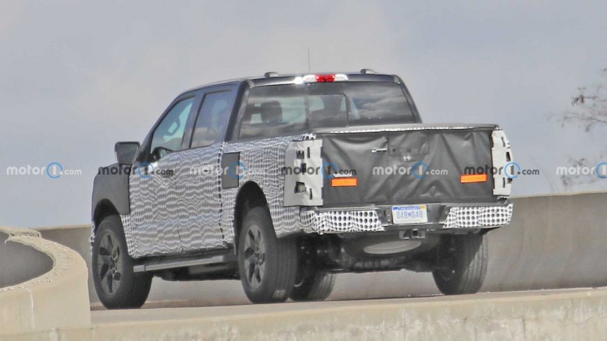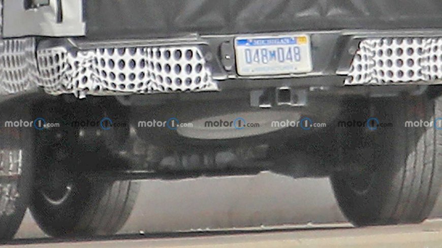 «Мул» электропикапа был покрыт тяжёлым камуфляжем. Особенно тщательно задрапировали заднюю часть, что может указывать на появление там многофункционального заднего борта и новых фонарей.