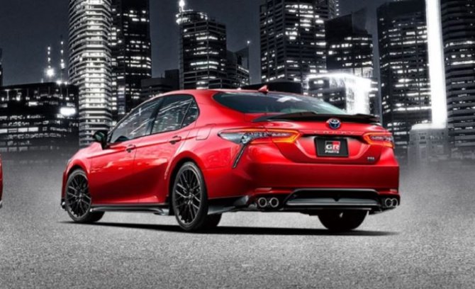 Версия Toyota Camry GR Sport (на 2-х нижних фото) отличается иным обвесом, 18-дюймовыми колёсами и возможной 2-цветной окраской кузова (крыша и корпуса наружных зеркал – чёрные), а также спойлером, установленным на крышке багажника.