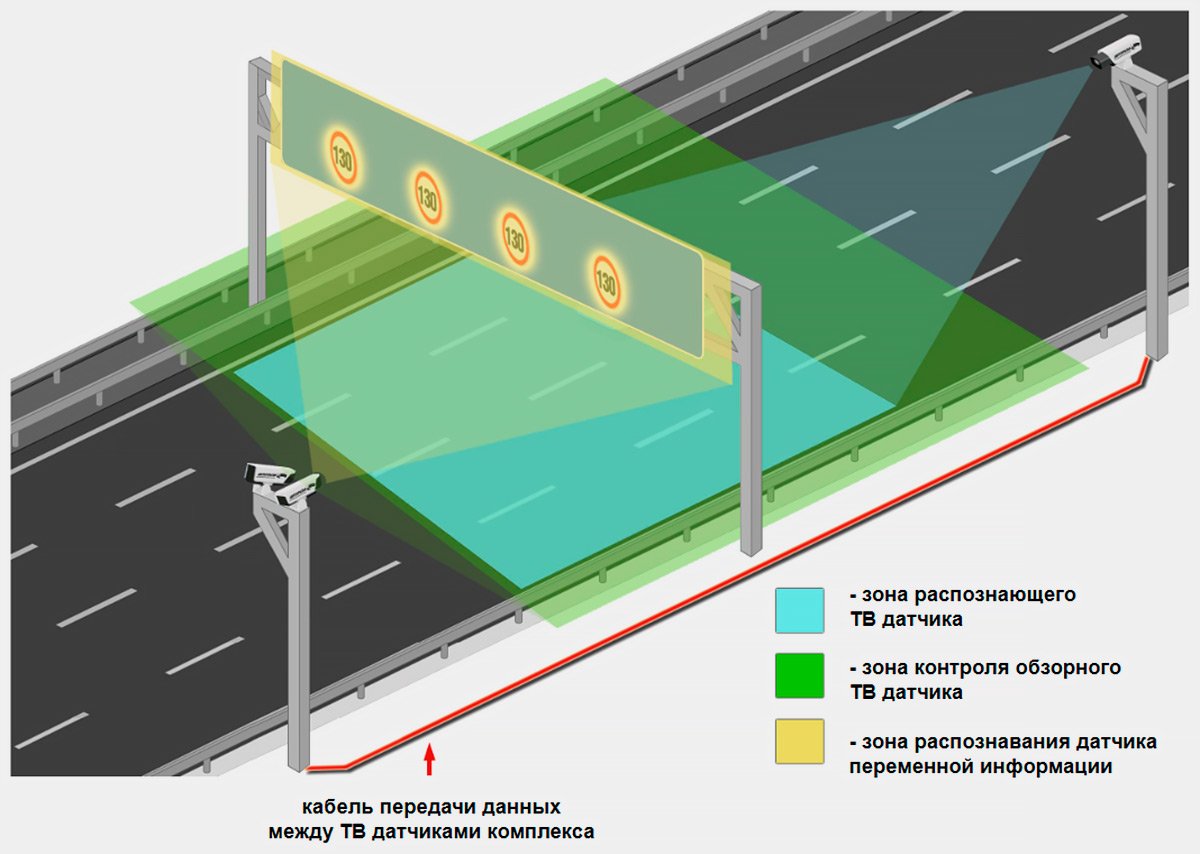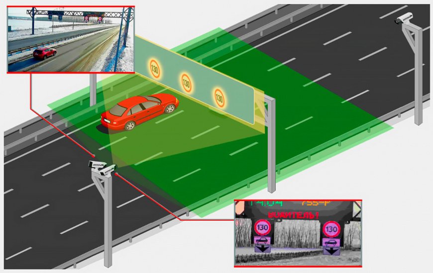 Получается, что каждый автомобиль попадёт в объектив дважды. При этом, в 1-й раз будет измерена его скорость до динамического знака, а во 2-й — после него. В обоих случаях будут сделаны снимки, куда попадёт и информация с табло. Разница во времени между снимками поможет определить, превысил водитель скорость или нет.