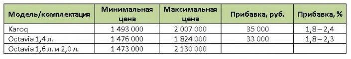Выросли рублёвые цены на кроссовер Skoda Karoq и лифтбек Skoda Octavia. Прибавка составила 33 000 — 35 000 руб.