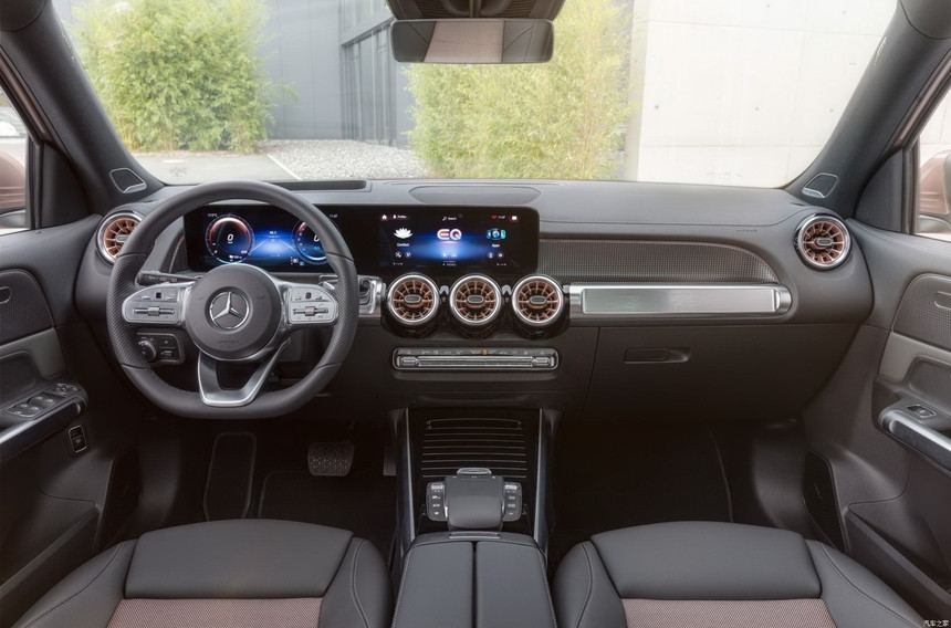 В салоне электромобиля появились новая цифровая «приборка» и фирменная мультимедийная система MBUX, оформленная иначе, чем у Mercedes-Benz GLB.