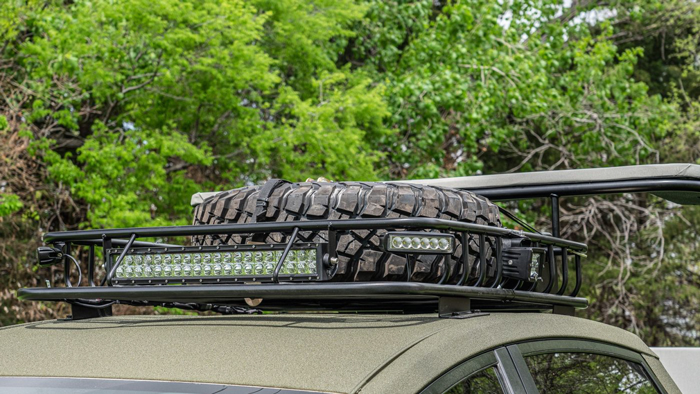 Ходовую часть гибридомобиля тоже серьёзно модернизировали. Подробности тюнинга пока не разглашаются, но по снимкам становится понятно, что Predator Prius оснащён полным приводом, длинноходными амортизаторами и «зубастыми» шинами для офф-роуда.