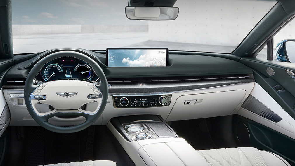 Салон G80 EV также достался от стандартного G80. Интеллектуальная система полного привода умеет отключать электромотор, приводящий в движение задние колёса - для экономии заряда аккумулятора. Мощность силовой установки равна 365 л.с.