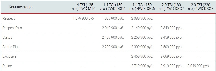 Кроме того, временно прекратились продажи комплектаций Volkswagen Tiguan, оснащённых 2-литровыми бензомоторами мощностью в 180 и 220 л. с. С новым списком комплектаций Volkswagen Tiguan и ценами на них можно ознакомиться здесь: