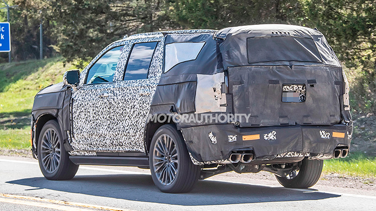 «Мулы» новинки выполнены в 2-х вариантах — со стандартной и удлинённой базой. От обычных Cadillac Escalade они отличаются парой сдвоенных выхлопных патрубков квадратного сечения — почти таких же, как у спорт-седана Cadillac CT5-V.
