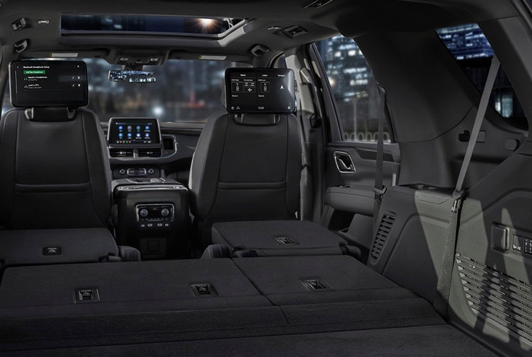Интерьер Chevrolet Tahoe заметно обновлён, в разных модификациях можно выбрать «капитанские» кресла для второго ряда — в самой компании, скажем, подчёркивают, что теперь автомобиль оснащен электронным селектором переключения передач кнопочного типа.