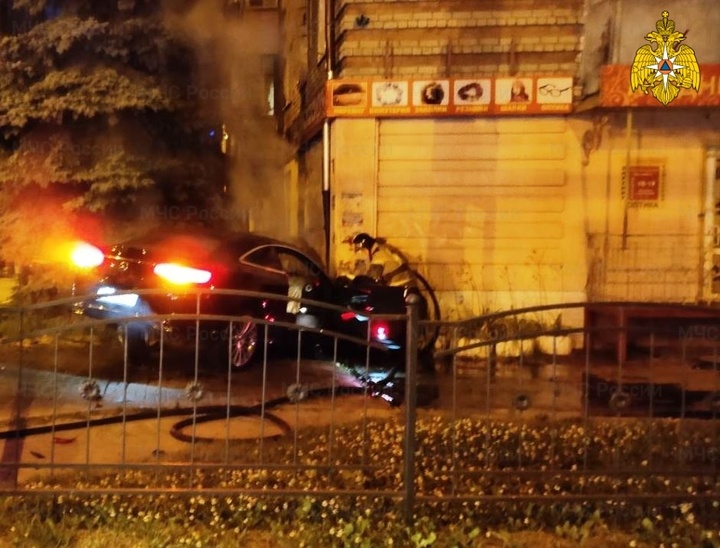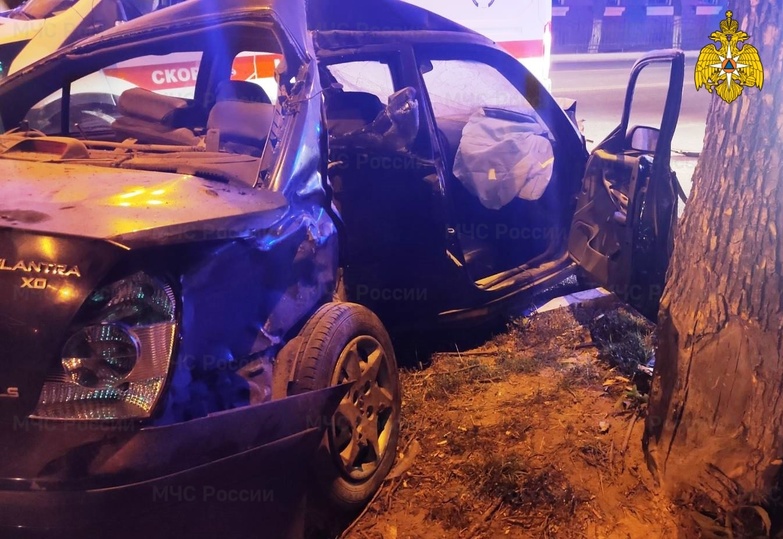 По имеющимся данным, 36-летний водитель автомобиля Mercedes выехал на перекресток на красный сигнал светофора и столкнулся с Hyundai. От удара Mercedes отбросило в здание, и он загорелся. Hyundai врезался в дерево.