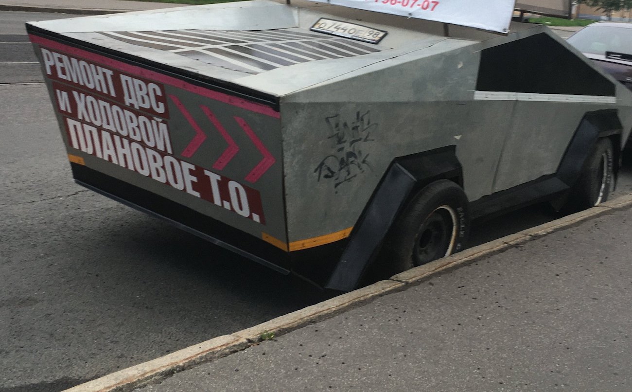 Пока Илон Маск никак не может начать выпуск пикапа Tesla Cybertruck, его уже можно увидеть на российских дорогах. Российские умельцы собрали его копию, которую мы случайно сфотографировали на одной из дорог Санкт-Петербурга.