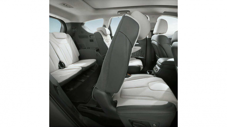Новая версия среднеразмерного паркетника будет 6-местной — в среднем ряду установлена пара огромных «тронов», оснащённых широким диапазоном регулировок (естественно, с электроприводом), обогревом и вентиляцией.