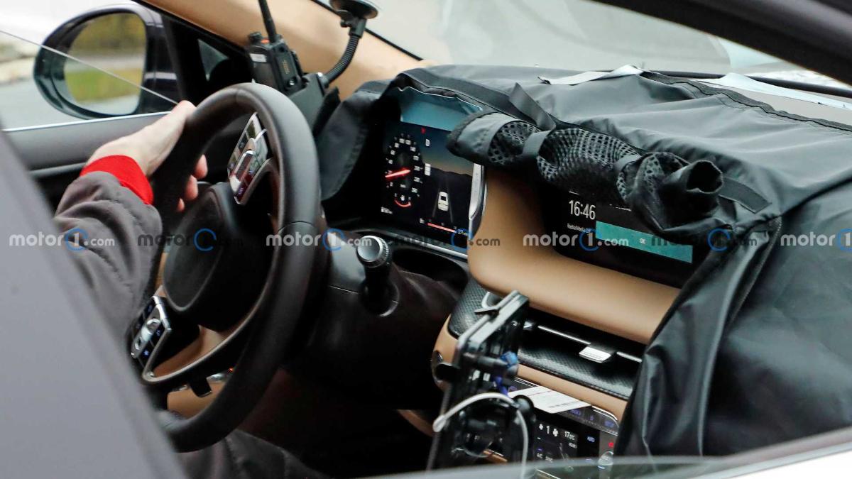 Передняя панель седана покрыта маскировкой, но можно увидеть, что на ней появилась виртуальная «приборка» внушительного размера, а вот тачскрин «мультимедийки» сделан весьма небольшим.
