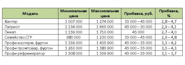 Выросли цены на автомобили УАЗ