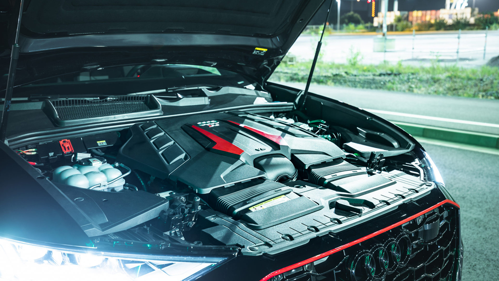 Audi RS Q8 — сам по себе «заряженный» автомобиль. В стандартной версии он комплектуется MHEV-гибридной силовой установкой, состоящей из 600-сильного бензинового V8 объёмом в 4 л., имеющего двойной турбонаддув, и 48-вольтового стартер-генератора.