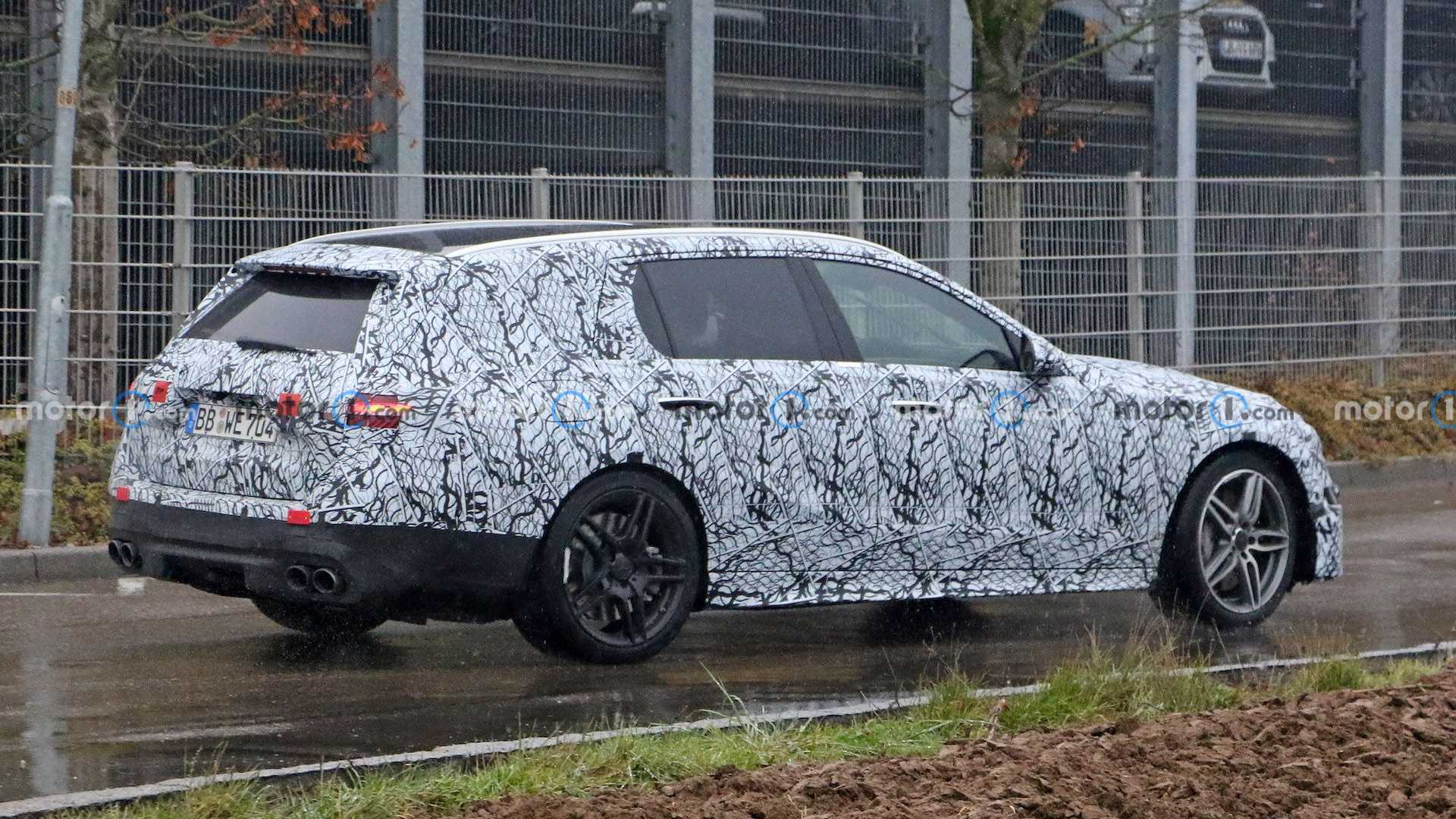Что касается универсала, то это — более «заряженный» Mercedes-AMG C63. Двигатель у него такой же, как у седана, но работает он в составе MHEV-гибридной силовой установки. В результате его мощность, по предварительным данным, составляет 550 л. с.