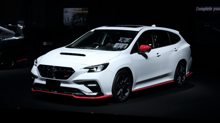Следующая новинка — спорт-универсал Subaru Levorg STI Performance Concept. Он оснащён таким же аэродинамическим обвесом, как и седан, только без антикрыла — его заменил спойлер на багажной двери.