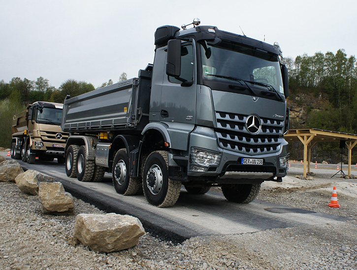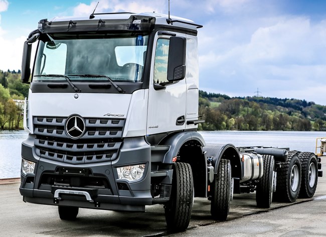 Это 2-осный автомобиль с колёсной формулой 4×2. Его полная масса составляет 19 000 кг, а грузоподъёмность — 12 100 кг. Для длиннобазной версии этот показатель возрастает до 12 400 кг. Кабина новинки несколько заужена — немцы ставят подобные на строительные самосвалы и шасси Mercedes-Benz Arocs (на двух фото ниже).