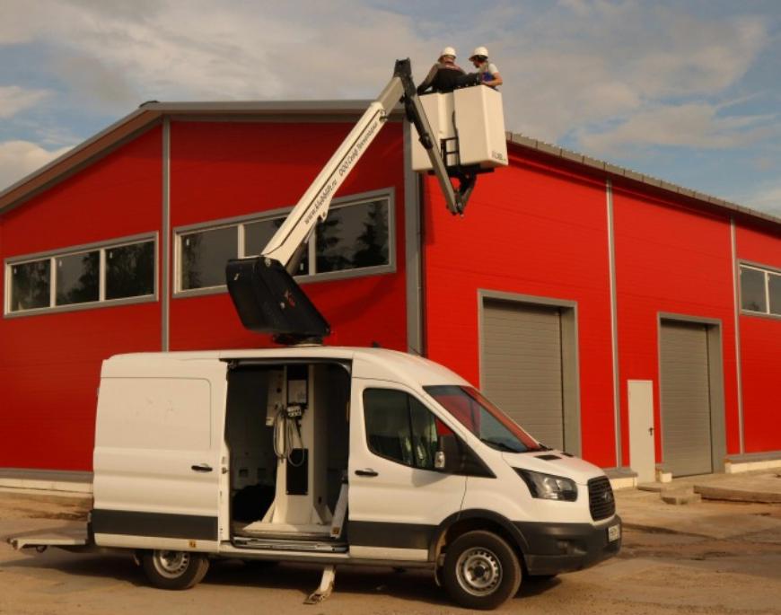 Новую автовышку можно монтировать в цельнометаллические фургоны Ford Transit с высокой или средней крышей и со стандартной или удлинённой базой. Привод может быть задним либо полным.