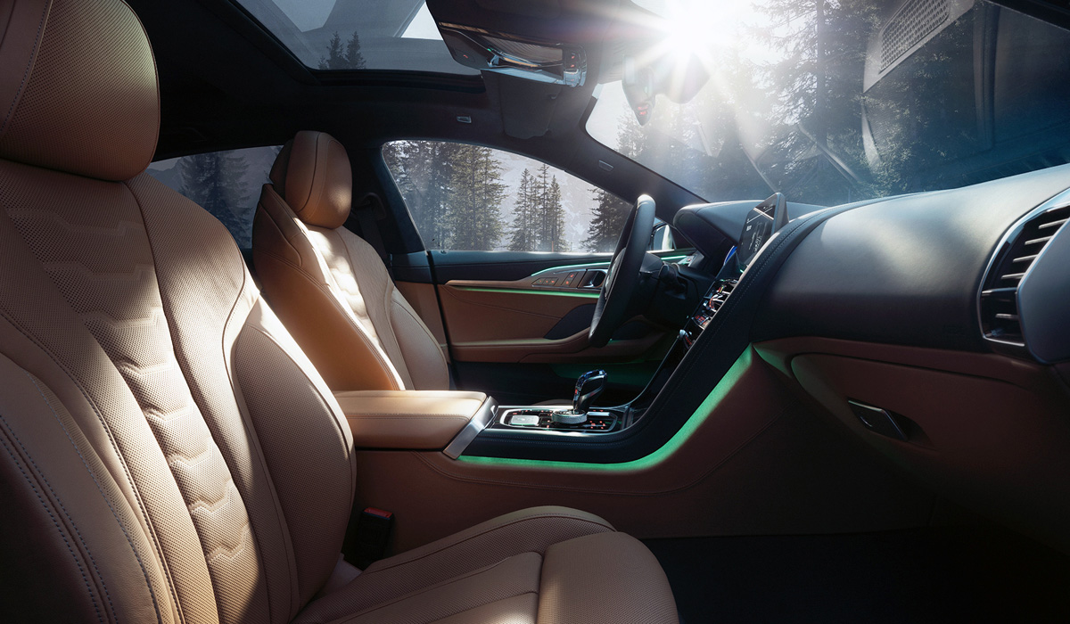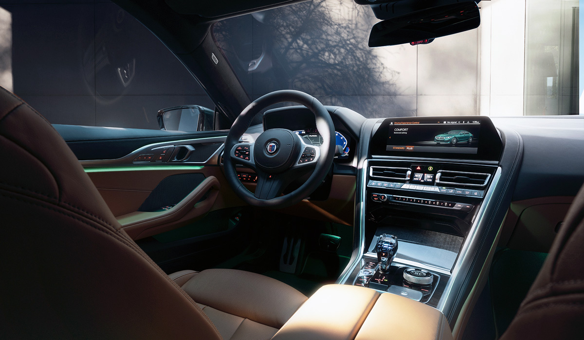Салон спорткара почти идентичен BMW 8-Series Gran Coupe, но есть и отличия. Например, оригинальная цифровая «приборка» диагональю в 10,25 дюйма уступила место дисплею Live Cockpit Professional в 12,3 дюйма.