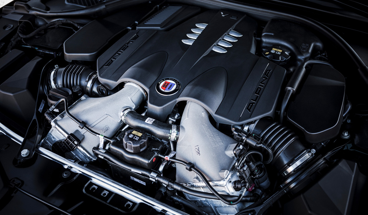 Под капотом «заряженного» спорт-седана установлен знаменитый бензиновый V8 объёмом в 4,4 л., оснащённый двойным турбонаддувом. Мастера из Alpina «раскачали» его до мощности в 621 л. с. при крутящем моменте в 800 Нм.