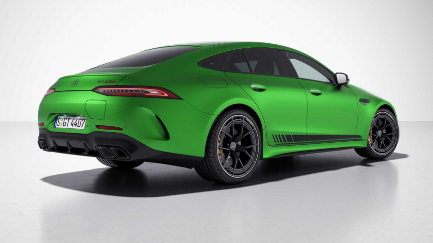 Кстати, максимальная комплектация Mercedes-AMG GT 63 SE Performance, получившая обозначение Edition, отличается от начальной своим внешним видом. Лифтбек, например, получил эксклюзивную окраску кузова в яркий зелёный оттенок AMG Green Hell Magno и 21-дюймовые кованые колёса чёрного цвета с пятью Y-образными спицами.