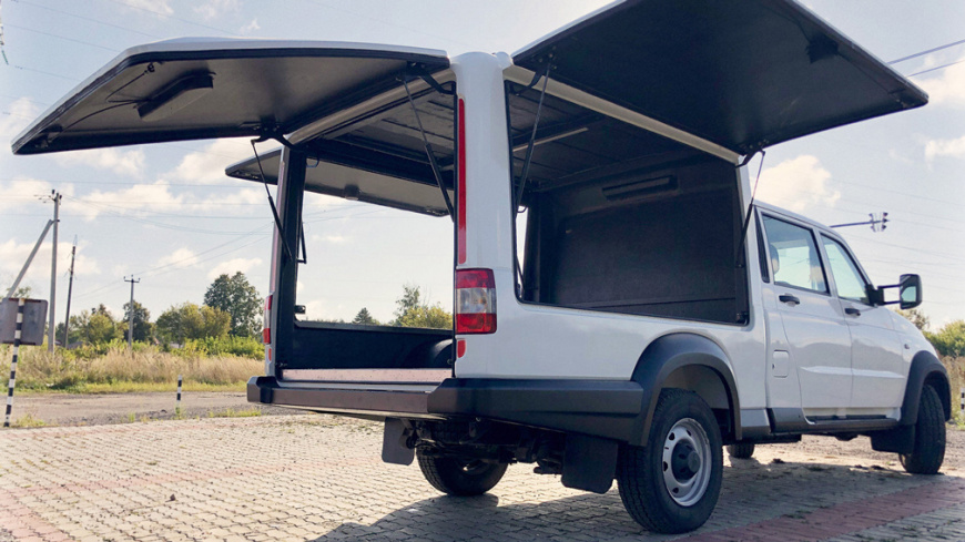 Такие «полуторки» оснащены фургонами объёмом в 5 куб. м., разработанными ульяновской фирмой «Автодом». Их отличительная черта — подъёмные двери не только сзади, но и в боковых стенках. Все они оснащены амортизационными упорами и замками.