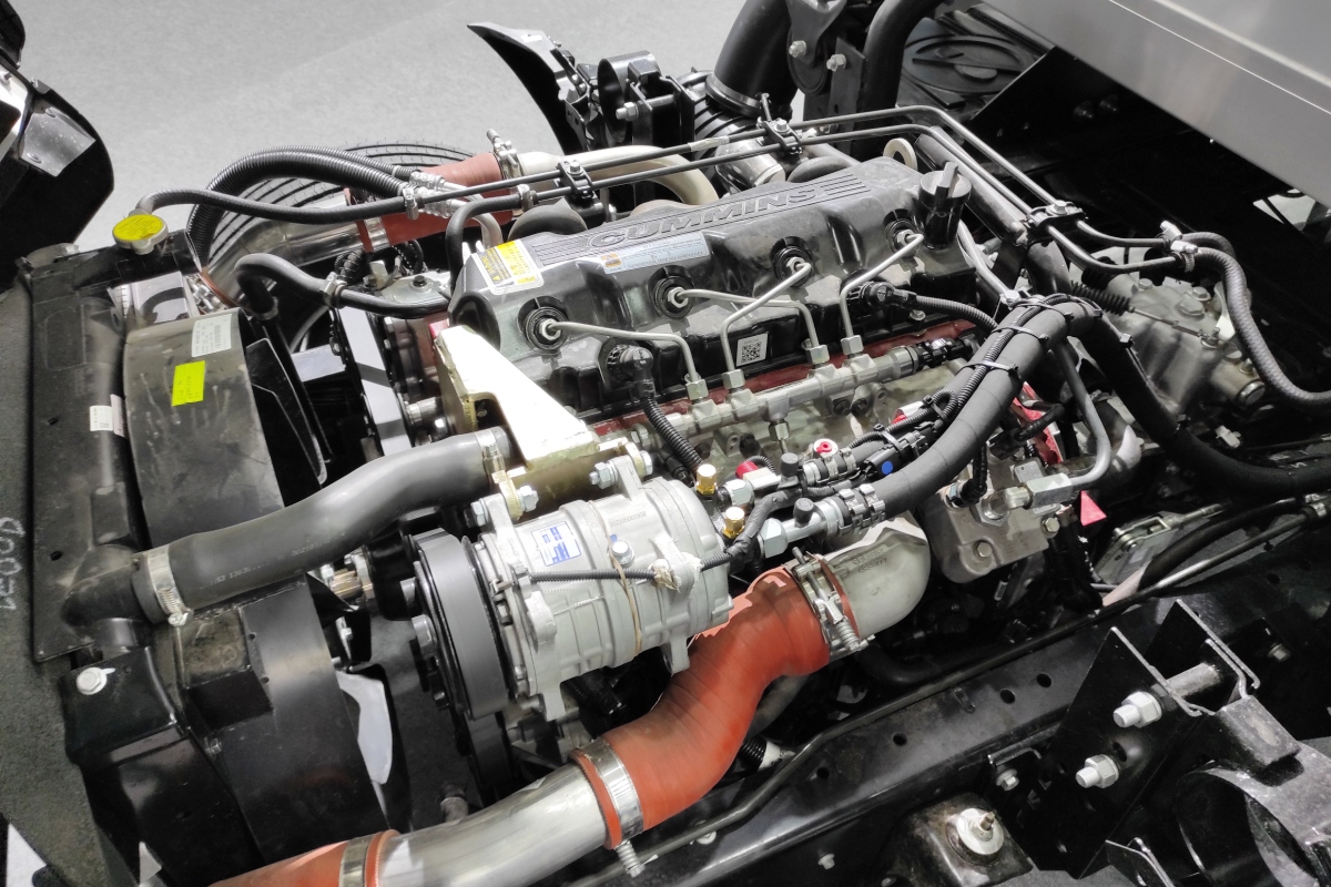 Новый грузовик укомплектован 154-сильным турбодизелем Cummins ISF3.8S5154 объёмом в 3,8 л. Этот надёжный и неприхотливый мотор работает в паре с 6-ступенчатой «механикой» JAC LC6T540B Fast Gear.