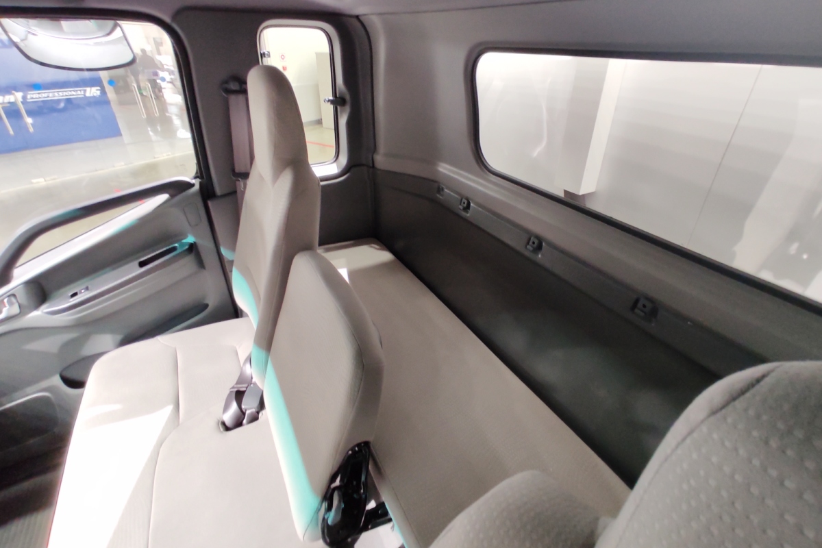 В перечне штатного оснащения новинки значатся: регулируемая рулевая колонка, круиз-контроль, кондиционер, электрические стеклоподъёмники и аудиосистема. Откидная кабина, имеющая спальное место, установлена на 4-точечной подвеске. Спереди она — торсионная, сзади — на упругих резиновых элементах.