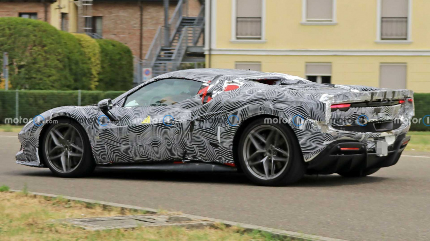 Несмотря на то, что «мул» спорткара полностью покрыт камуфляжем, можно понять, что его оснастили складной жёсткой крышей — как у более крупного Ferrari 812 GTS. На это намекает увеличившаяся в высоту задняя часть автомобиля — там будут размещаться электропривод и сама крыша в сложенном состоянии.