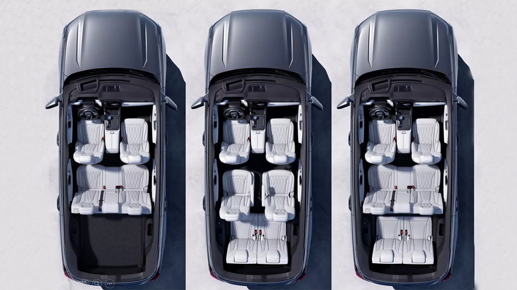 Столь внушительные размеры позволили разместить в салоне автомобиля 3 ряда сидений с 6-ю или 7-ю местами (посадочные формулы — 2+2+2 или 2+3+2). Есть и 2-рядная 5-местная модификация.