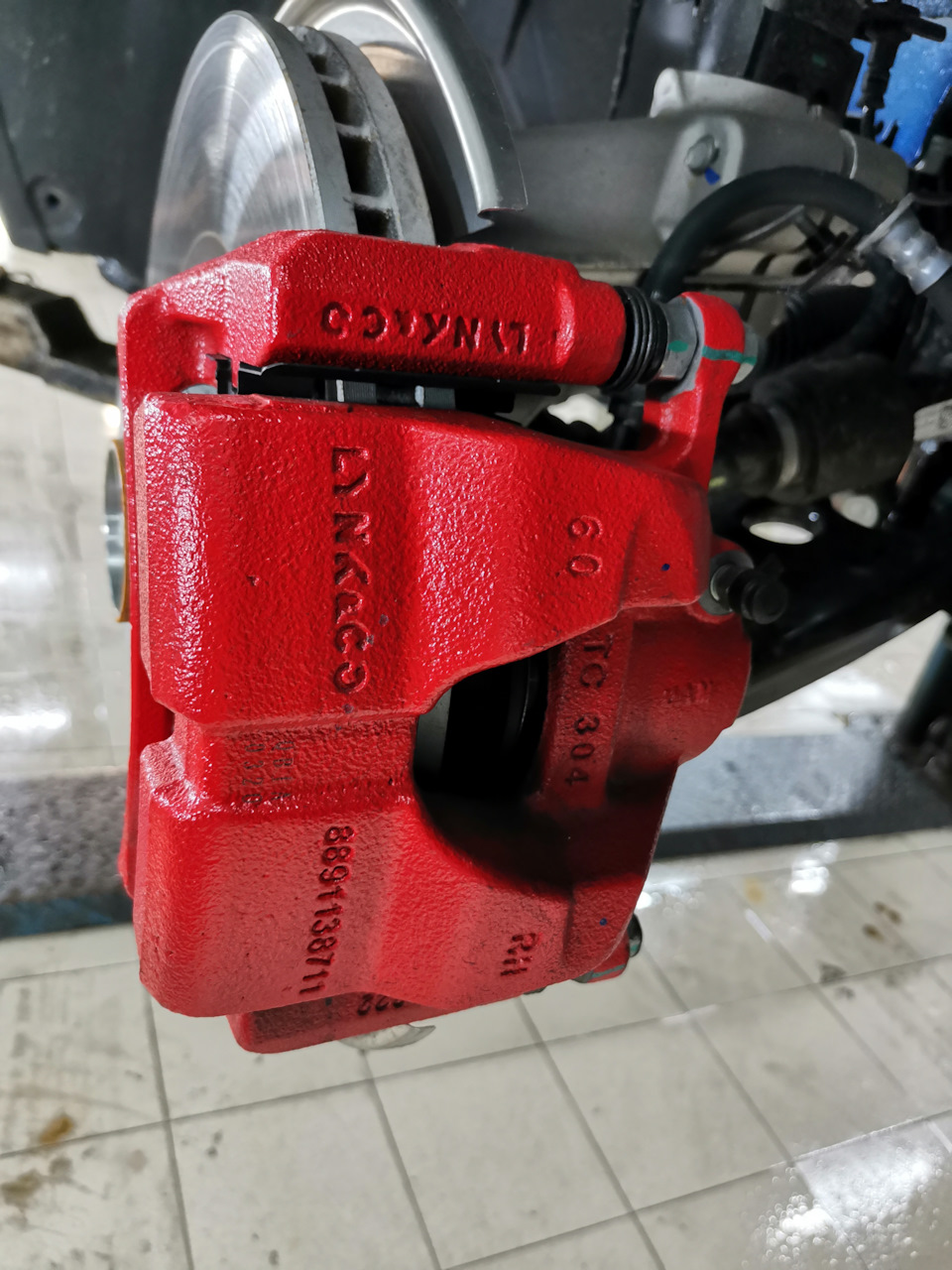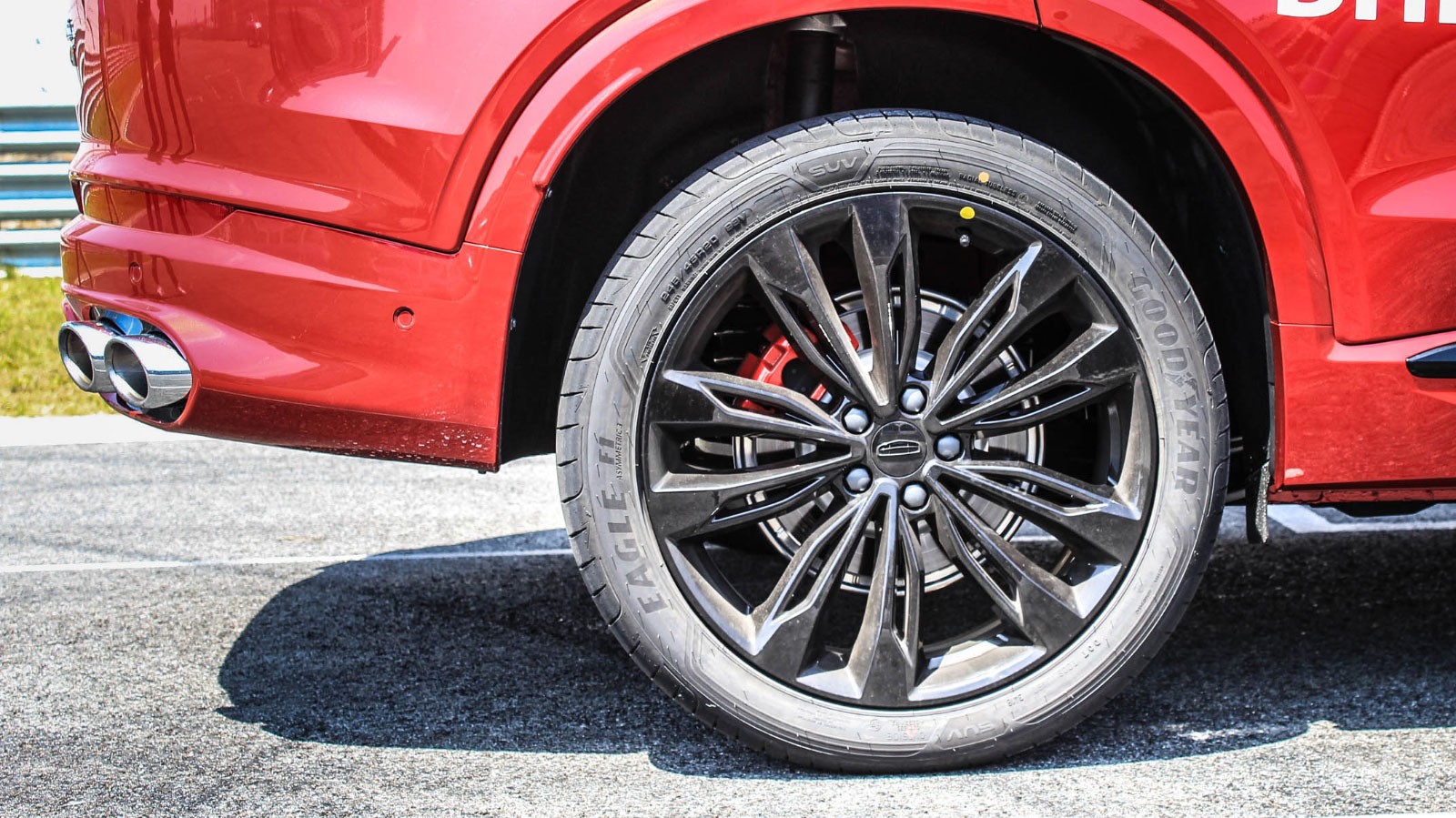 Солидности облику кроссовера добавляют 20-дюймовые (как на Toyota Land Cruyser 300) колёса ажурного рисунка, «обутые» в низкопрофильные шины Goodyear размерностью 245/45 R20. Они придают машине спортивный вид, который дополняют дисковые тормоза с красными суппортами дочерней фирмы Lynk&Co. Диаметр передних дисков — 322 мм, задних — 302 мм.