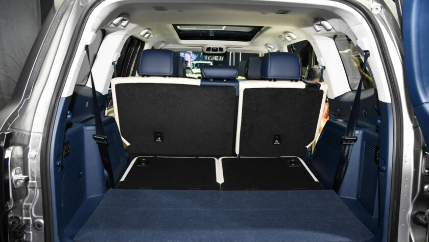 В топовой комплектации внедорожник дополнительно получает 2-цветную окраску кузова (с ней он выглядит просто великолепно), выдвижные подножки с электроприводом, проекционный экран, матричные фары и много чего ещё.