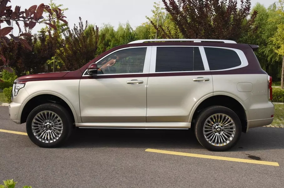 Массивный кузов Tank 500 весьма элегантен, насколько это возможно для большого внедорожника. Он имеет сглаженные очертания без чётко выраженных граней и щедро украшен хромом, которым покрыты колёса со множеством спиц, широкие окантовки окон и заднего номера, а также обрамляющая задние фонари и соединяющая их полоса, на которой отштамповано название марки.