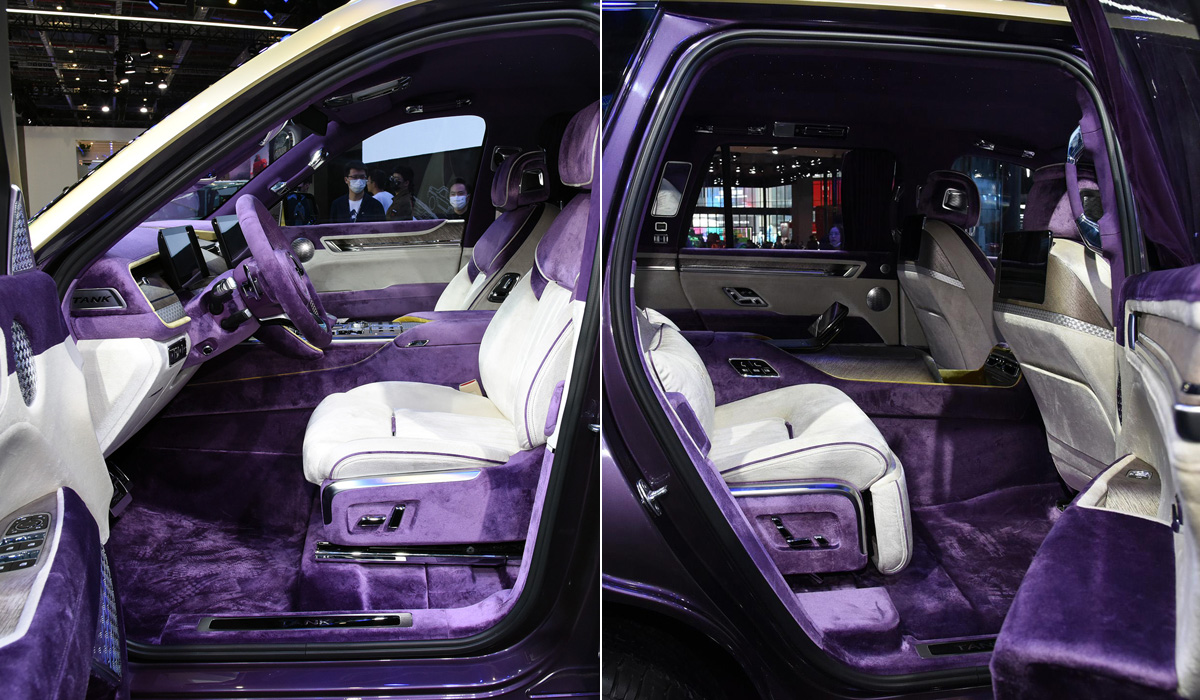Кстати, оба «Танка» весьма схожи внешне — длинные капоты, массивные, но элегантные кузова, огромные решётки радиаторов с вертикальным расположением, «люстры» головной оптики и обилие хрома в отделке. Но Tank 800 немного больше — его длина превышает 5 000 мм и имеет совершенно другие задние фонари причудливого дизайна.
