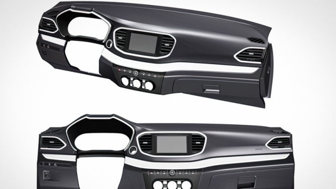 Судя по салону, на снимках — одно из начальных либо средних исполнений автомобиля. Об этом говорит отсутствие большого тачскрина-«планшета», выступающего за верхнюю кромку передней панели (на фото выше) — у начальных комплектаций Lada Vesta Cross NG его нет, а у «середнячков» он маленький и встроен в центральную консоль.