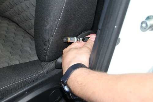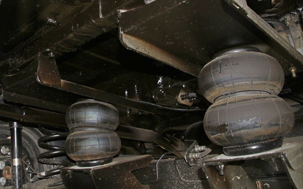 Компакнтый компрессор для пневмобаллонов установлен за водительским креслом, а его пульт управления с манометром — на задней стенке кабины, между водительским креслом и дверью. Кстати, в задней стенке сделали особые выемки, расширяющие возможности регулировки сидений.