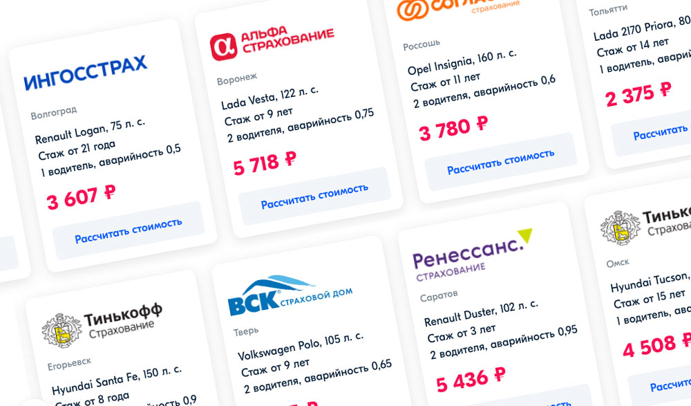 Чем больше предложений вам доступно, тем легче найти наиболее выгодное из них. На сайте вы сможете оформить страховку ОСАГО у одной из 10 наиболее известных и надёжных компаний на рынке, в том числе «Альфа-Страхование», «Согаз» и «Ренессанс». Сравните предложенные цены, чтобы выбрать наиболее выгодные условия.
