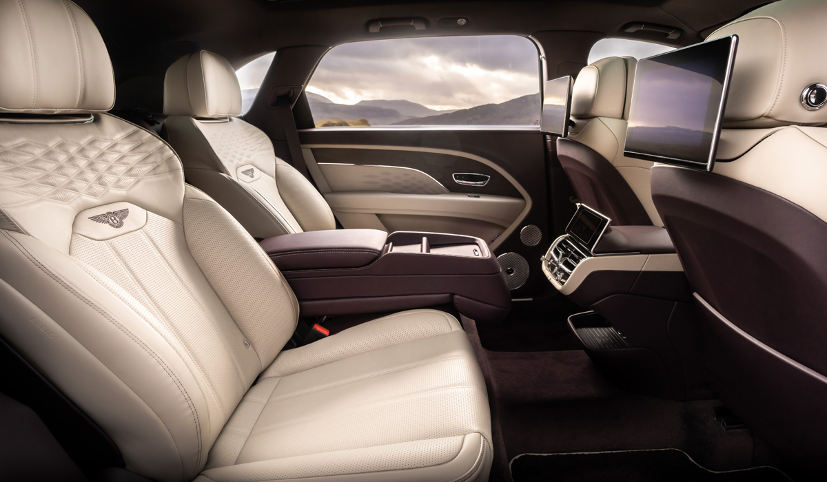 А вот по комфорту задних пассажиров Bentley Bentayga Extended Wheelbase, пожалуй, превзошёл всех своих собратьев. Во 2-м ряду установлены новые кресла Bentley Airline Seat, оснащённые широчайшим диапазоном электрорегулировок, которыми можно управлять с помощью сенсорного экрана на центральном тоннеле, а также индивидуальным климат-контролем — впервые в мире.