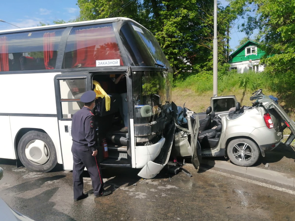 Автобус двигался в сторону Нижнего Новгорода. По предварительной информации, именно водитель автобуса не справился с управлением – в результате столкновения он погиб на месте. Водитель легковушки, а также пассажиры автобуса не пострадали.