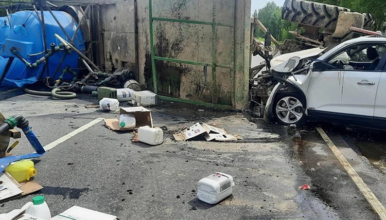 По имеющимся данным, неизвестный водитель подрезал трактор Valtra с прицепом. Водитель трактора потерял управление и выехал на встречную полосу. После этого трактор перевернулся и столкнулся с автомобилем KIA.