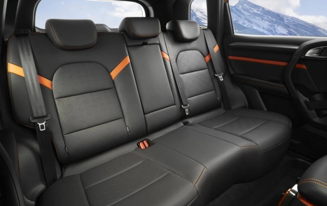 Обшивка салона украшена контрастными вставками оранжевого цвета, особенно гармонично смотрящимися при окраске кузова в «Терракотовый сапфир». Но у начальной комплектации паркетника таких вставок не будет.