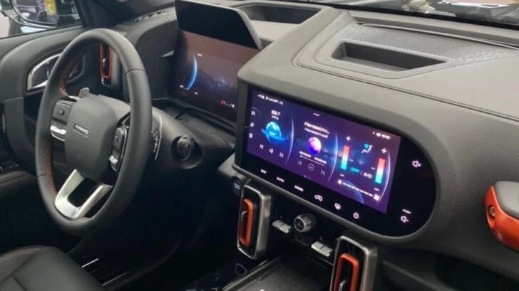 Внутреннее убранство автомобиля полностью аналогично интерьеру китайской версии Haval Big Dog. В частности, на передней панели имеются такие же многофункциональный руль, виртуальная «приборка», мультимедийная система с вытянутым по горизонтали тачскрином диагональю в 12,3 дюйма, кнопка запуска мотора и бесконтактная зарядка для гаджетов.
