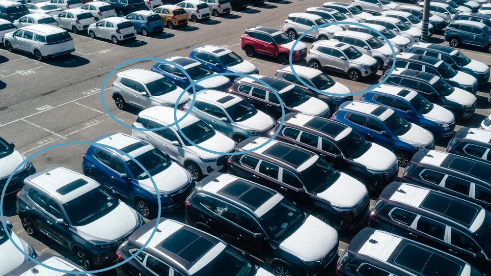 Модернизированная модификация компактного паркетника (на фото ниже такие автомобили обведены синими кружками), имеющая заводской индекс T3XDE00TL5W6P1G1, может комплектоваться 2-мя вариантами силовых агрегатов.