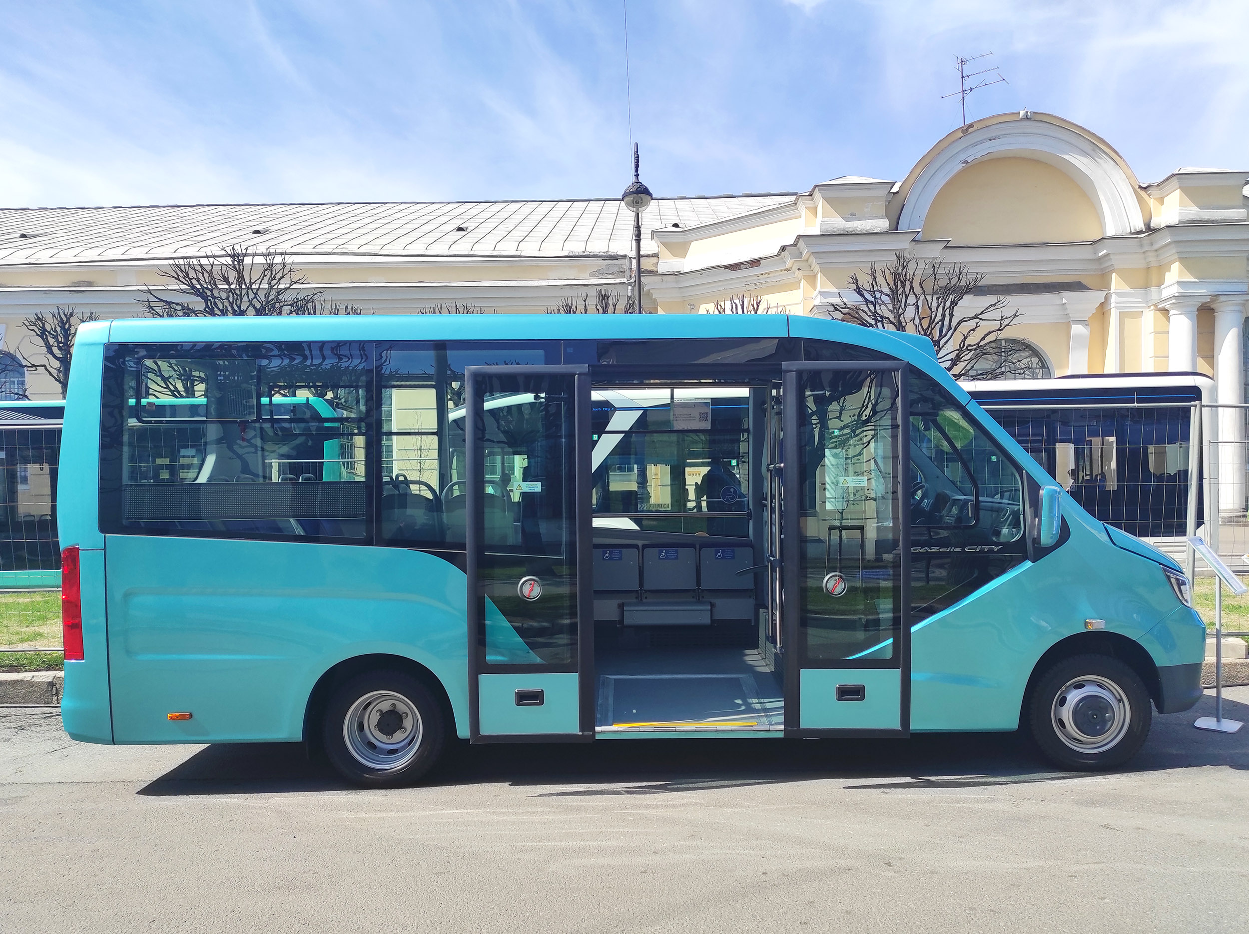 В остальном новинка полностью повторяет дизельную версию «ГАЗель City». Она, в частности, оборудована пневмоподвеской с системой Kneeling, наклоняющей кузов в сторону остановки, а также выдвижной аппарелью для удобства погрузки-выгрузки детских и инвалидных колясок.
