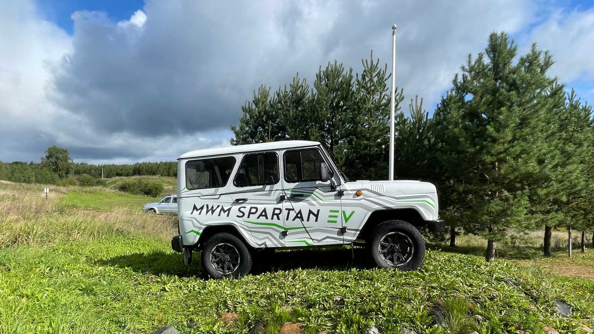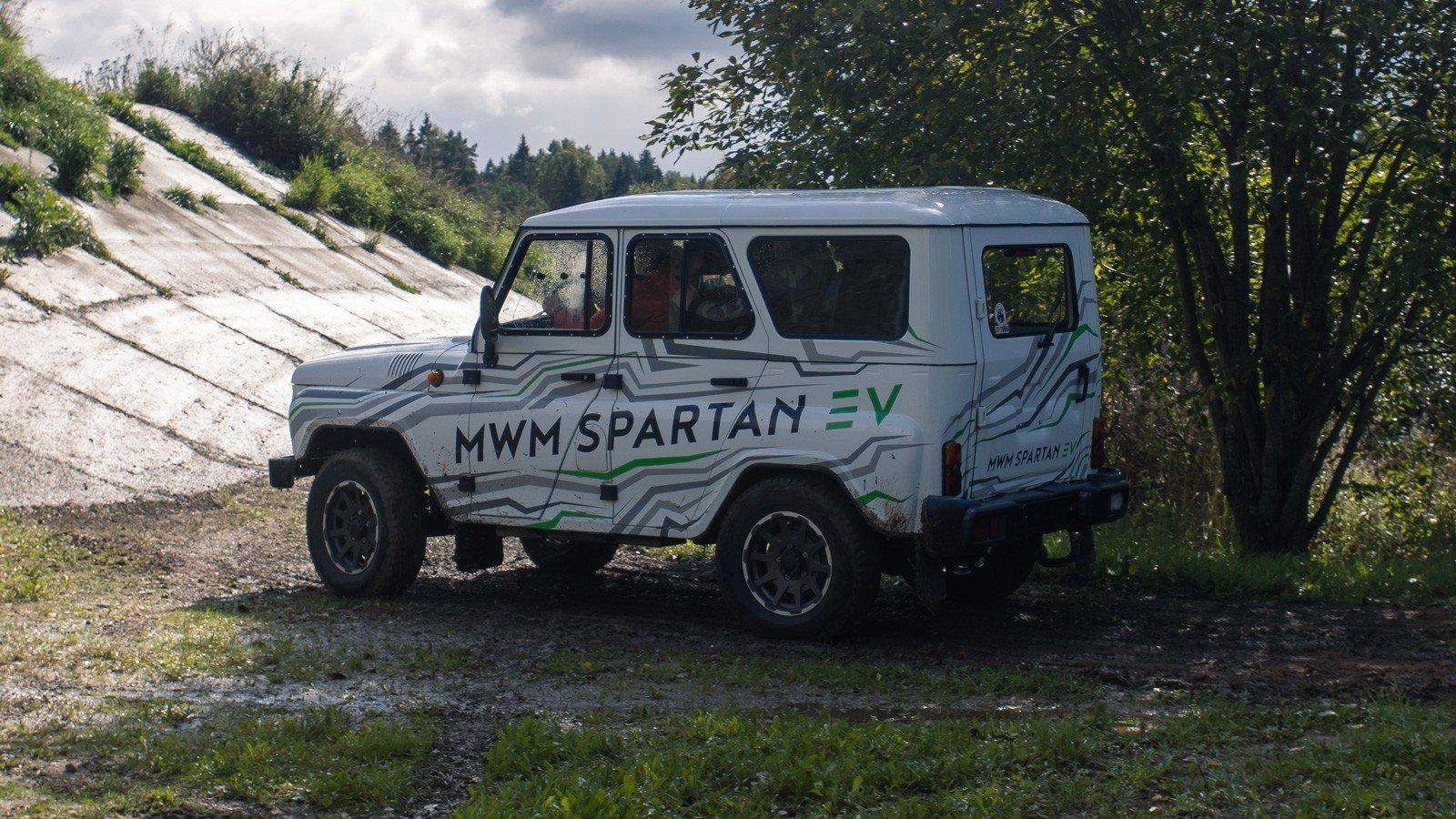 MWM Spartan оснащён 163-сильным электродвигателем, установленным вместо штатного бензомотора. Трансмиссия стандартная — 5-ступенчатая «механика» и система полного привода с подключаемым передним мостом. Осталась неизменной и зависимая подвеска на обеих осях.