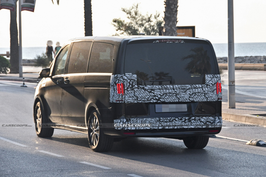 Прототип обновлённого Mercedes-Benz EQV, замеченный на одной из немецких дорог, покрыт камуфляжной плёнкой лишь частично — спереди и сзади. Впрочем, маскировка не мешает рассмотреть изменённые бамперы, получившие новую графику фары и задние фонари, а также другую фальшрешётку радиатора.
