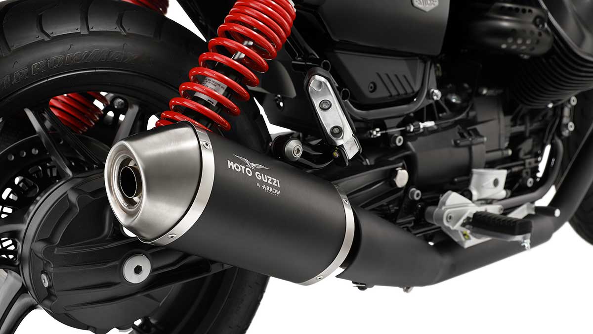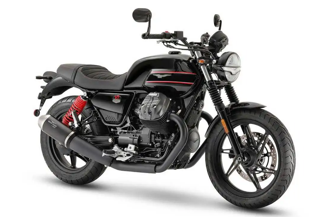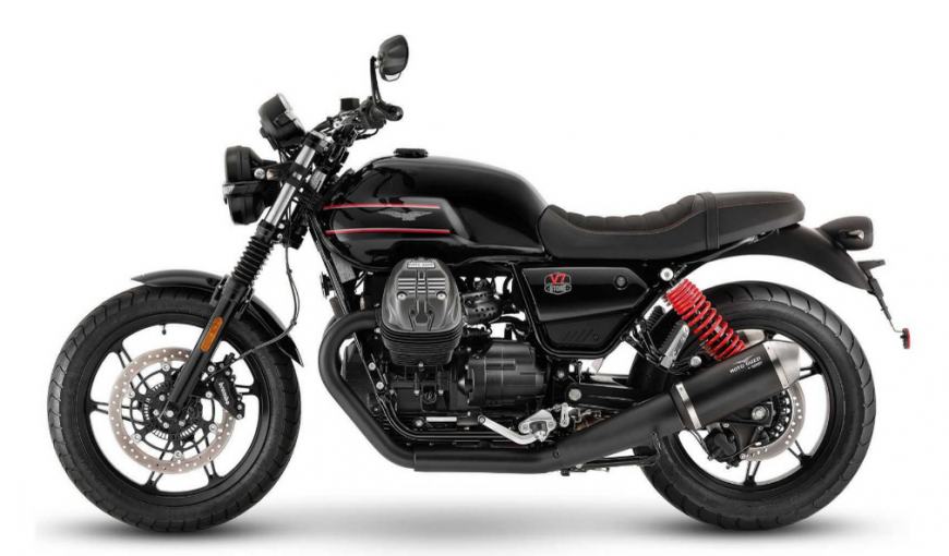 Внешне обновлённый Moto Guzzi V7 Stone Special отличается окраской в чёрный глянец, с которым контрастируют красные цировки на баке, значки с названием модели, а также пружины задних амортизаторов.