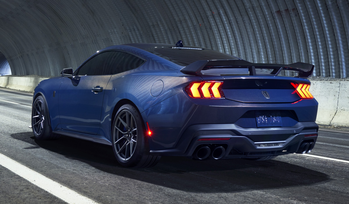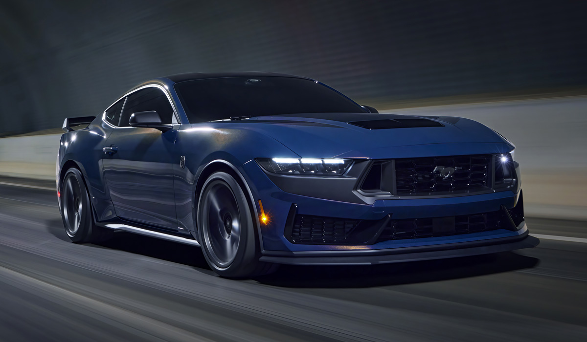 Наконец, пони-кар получил новую модификацию Ford Mustang Dark Horse (на 3-х иллюстрациях ниже). Под её капотом установлен форсированный до 500 л. с. движок V8 Coyote, работающий в паре с 6-ступенчатой «механикой» от Tremec (АКПП будет предлагаться как опция).
