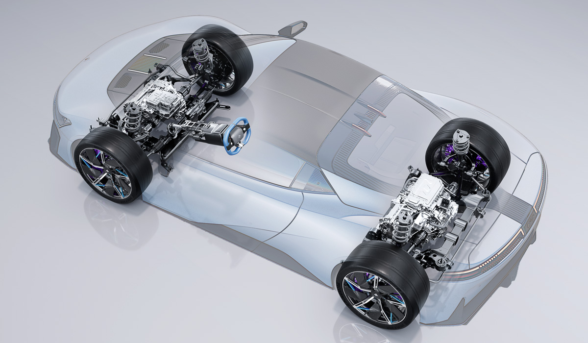 «Зелёная» новинка оборудована парой электромоторов, установленных на обеих осях. Суммарная мощность этого силового агрегата составляет 1 225 л. с., а крутящий момент на колёсах (с учётом передаточного отношения редукторов) – 1 2000 Нм.